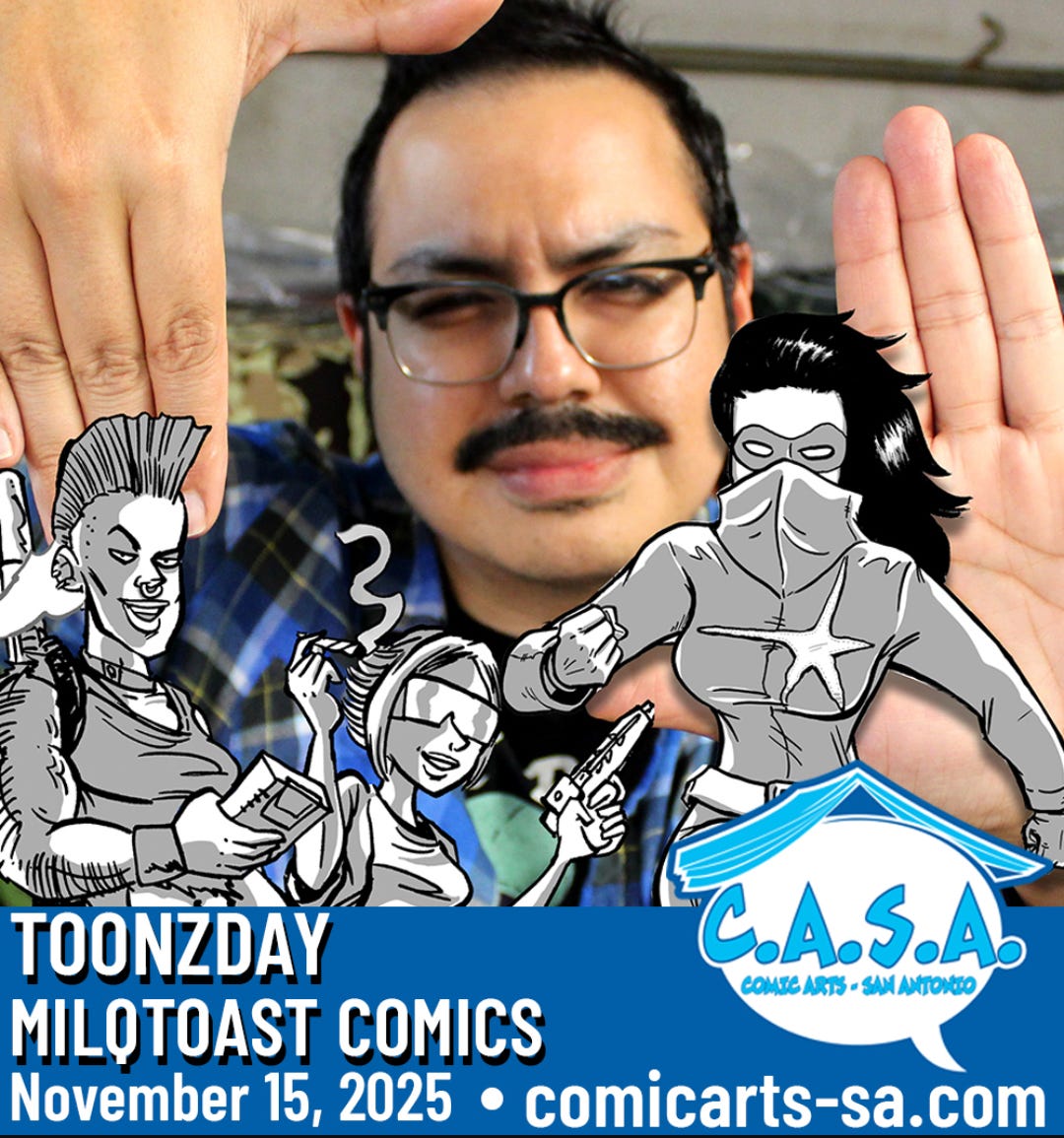 San Antonio, I’ll be back in your area November 15, 2025 for C.A.S.A. It’s a one day show that’s very comic-centric. Come by and snag the new print!